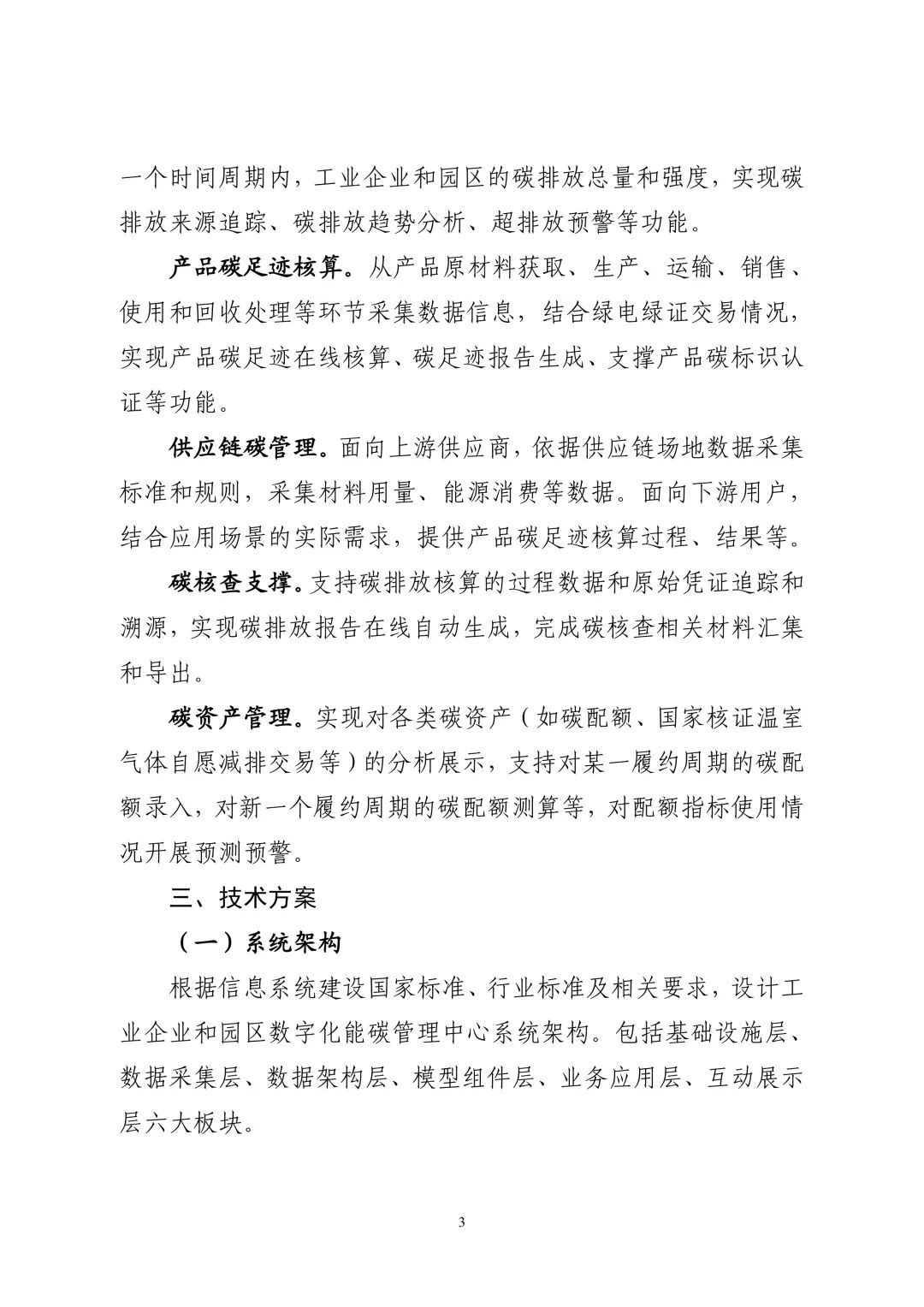 2025年3月18日,为加强工业节能降碳管理,推进数字技术赋能绿色低碳转型,支撑构建系统完备的碳排放双控制度体系,工业和信息化部近日印发《工业企业和园区数字化能碳管理中心建设指南》(工信厅节〔2025〕13号,以下简称《指南》)。《指南》包括四部分内容。一是建设目标,通过数字化能碳管理中心的建设运行,实现对能耗和碳排放的精准化计量、精细化管控、智能化决策与可视化呈现,提升工业企业和园区节能降碳管理能力,支撑能源利用效率提升和碳排放降低,促进绿色低碳转型。二是业务功能,明确数字化能碳管理中心具备能耗查询、计算、分析、能效对标、优化、用能与碳排放预算管理、碳足迹核算等功能。工业企业和园区可结合自身行业特点、实际需求等,确定开发建设的具体功能。三是技术方案,明确数字化能碳管理中心的系统架构包括基础设施、数据采集、数据架构、模型组件、业务应用和互动展示。工业企业和园区需依据节能降碳及信息系统建设相关国家标准、行业标准和政策要求等,开展系统架构建设并持续更新。四是保障措施,依据《中华人民共和国节约能源法》等相关规定,从组织机构、管理制度、网络和数据安全等方面提出具体措施,保障数字化能碳管理中心的高水平建设和高质量运行。下一步,工业和信息化部将加强《指南》宣贯解读,指导各地区因地制宜开展工业企业和园区数字化能碳管理中心建设运行,加快节能降碳技术改造升级,提升重点行业领域碳管理水平,为实现碳达峰碳中和目标奠定基础。工业和信息化部办公厅关于印发《工业企业和园区数字化能碳管理中心建设指南》的通知