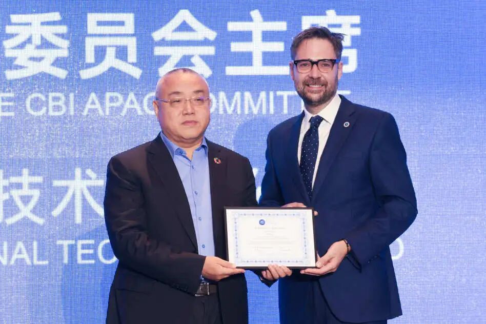 CBI执行董事Alistair Davidson博士向理士国际现场颁授亚太委员会主席证书,董李博士代表公司上台接受荣誉。