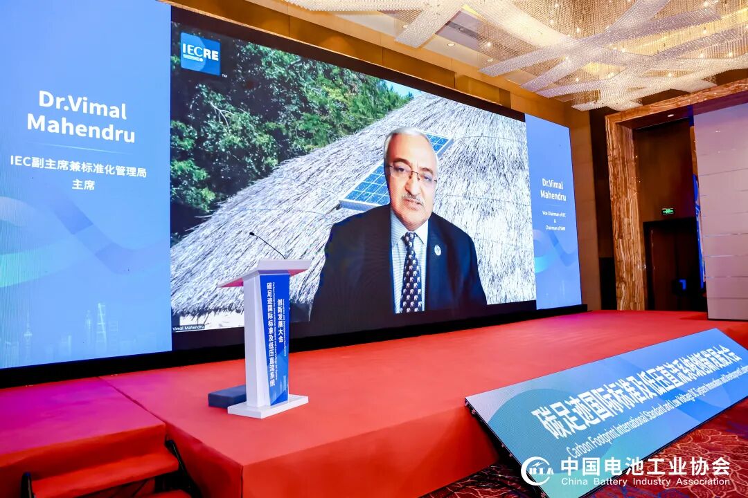 中国轻工业联合会张崇和会长向大会致辞。他提到,发展并应用新能源电池,承接能源结构调整是我们实现双碳目标的必由之路。本次大会围绕碳足迹科学核算、国际互认等主题,既是落实党中央决策部署、践行国家双碳战略的体现,也是推动电池国际碳足迹管理高质量创新发展的重要契机。他建议,一是市场引领,拓宽新能源发展路径。紧跟市场趋势发展储能电池、新能源汽车电池、低空飞行电池等,并关注机器人、无绳电器、适老产品等低压直流新应用场景。二是标准先行,引领新能源电池发展碳中和。深入研究碳足迹核算准则,对接国际法规,助力双碳战略实施。三是合作创新,推动新能源电池发展全球化。跟踪前沿趋势,推动学术研究、标准计量、检验认证、生产制造协同创新,推动全球化发展。四是协同共生,构建新能源电池发展新生态。密切联系IEC等国际组织,促进国际互认,共守双碳承诺,推进绿色生态发展。