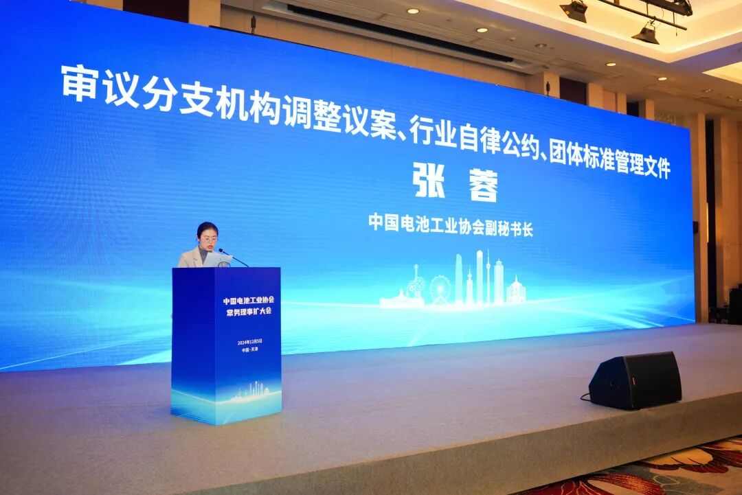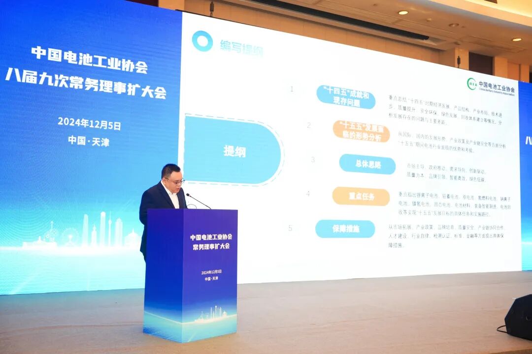 2024年12月5日上午,中国电池工业协会八届九次常务理事扩大会在天津隆重召开,众多电池行业的领军企业代表、专家学者以及协会常务理事代表共计100余人齐聚一堂,共商行业发展大计,会议现场气氛热烈而庄重。