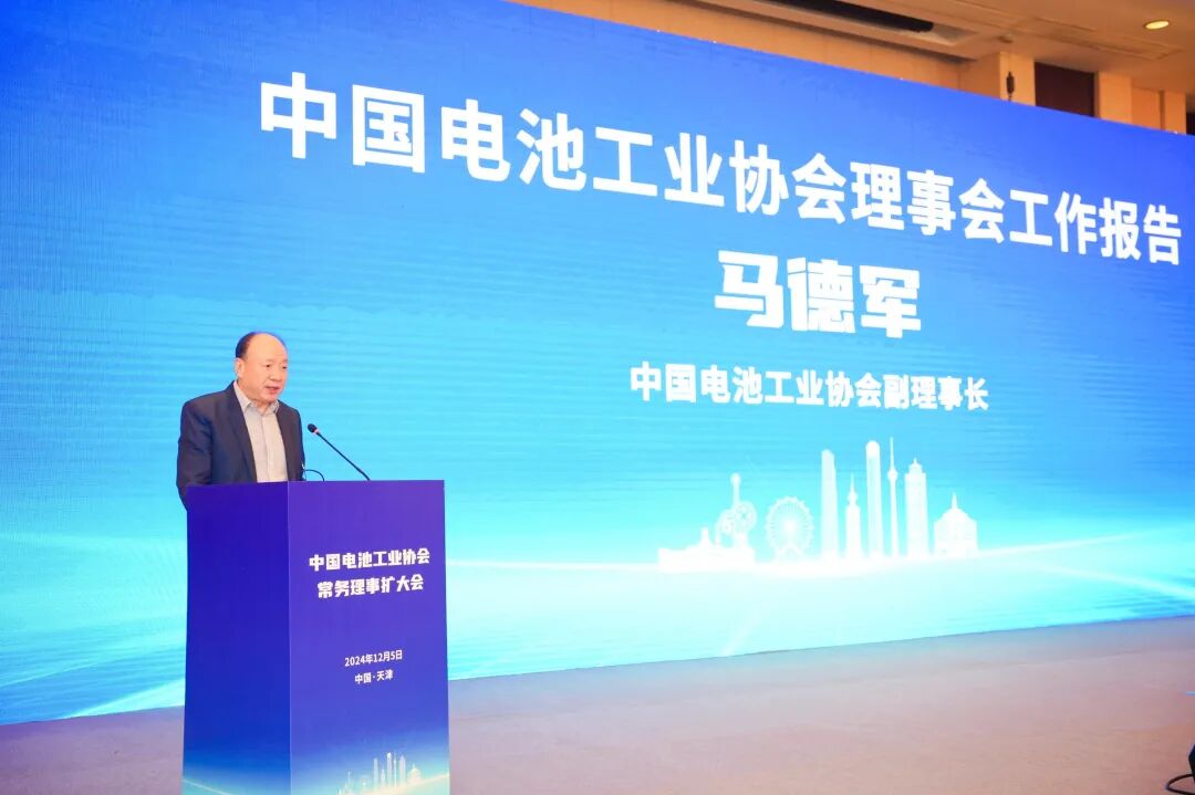 马德军副理事长代刘宝生理事长向常务理事会作工作报告。他全面回顾 2024 年协会工作,剖析行业形势,并规划 2025 年重点工作任务。2024 年,协会以新时代中国特色社会主义思想为指导,全面贯彻党的二十大和二十届二中、三中全会精神,加强协会建设,强化责任担当,落实重点工作,取得丰硕成果。其中,扎实开展党纪学习教育,落实全面从严治党责任;推进电池数字化碳管理工作,发布《中国电池数字护照体系白皮书》、启动试点、加强国际研讨交流;参与政策法规修订,向有关部门反映消费税、碳规锁、贸易摩擦、进出口等行业诉求;关注行业安全质量问题,引导加强行业自律;推动平台活动建设,促进行业交流;增强科技创新服务,强化标准与人才工作;加强协会规范管理,通过民政部全国性社会组织4A等级评估;深入开展行业调研,拓展特种电池等服务新场景。2025 年,协会将落实中央部署改革任务,以“加强学习,强化管理,落实职责,把握节奏,高质量发展”为工作指导原则,坚持和加强党的全面领导,继续推进党建、业务、文化深度融合,强化自身建设和服务,增强平台活动品牌建设,加强政策法规研究,积极反应行业诉求,推进行业自律,推动科技创新与绿色发展,深入实践“四个服务”,并做好“十五五”发展规划编制、电池数字护照体系建设、知识产权和标准化、信息和数据统计,职业技能人才等重点工作。立足电池行业高质量发展目标,不断强化政治担当,扎实履职尽责。